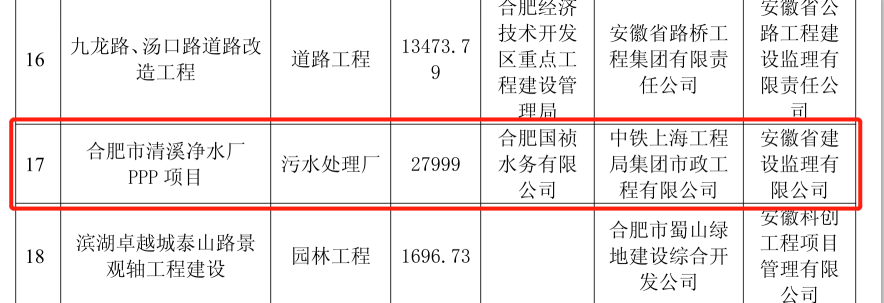 合肥清溪凈水廠PPP項(xiàng)目榮獲合肥市市政工程“廬州杯”獎