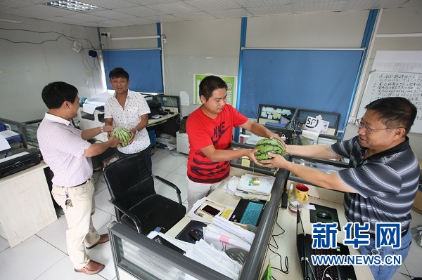 “各位工友快到我這里來,項目上給我們發西瓜和礦泉水了?!?/span>16日上午九點三十分,南京市棲霞區丁家莊保障房工地,中鐵上海工程局市政公司南京丁家莊保障房項目現場,揮汗作業的幾十名作業人員領取了項目部為他們準備的降溫用品。