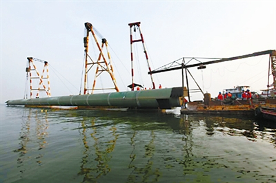 7月27日,徐州駱馬湖水源地第三標(biāo)段施工現(xiàn)場,中鐵上海局市政公司員工冒著酷暑在湖中心吊裝最后一節(jié)內(nèi)徑2.6米、長80.4米、壁厚28毫米的原水取水管道。大口徑長距離鋼管引水管線最后一節(jié)的就位,標(biāo)志著徐州駱馬湖水源地原水管全線貫通。 該工程將有效提升徐州市城市供水能力,改善百萬市民的用水需求和質(zhì)量,同時對推進特大型區(qū)域性中心城市戰(zhàn)略發(fā)展意義重大。
