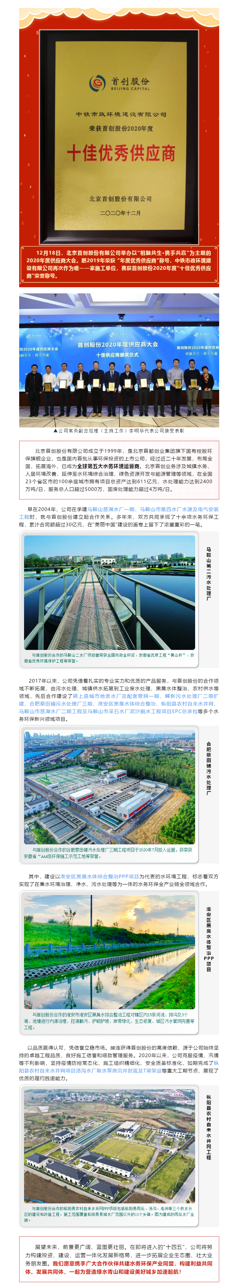 公司喜獲北京首創股份“十佳優秀供應商”榮譽