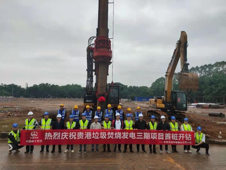 貴港垃圾焚燒發電三期項目首根鉆孔灌注樁開鉆